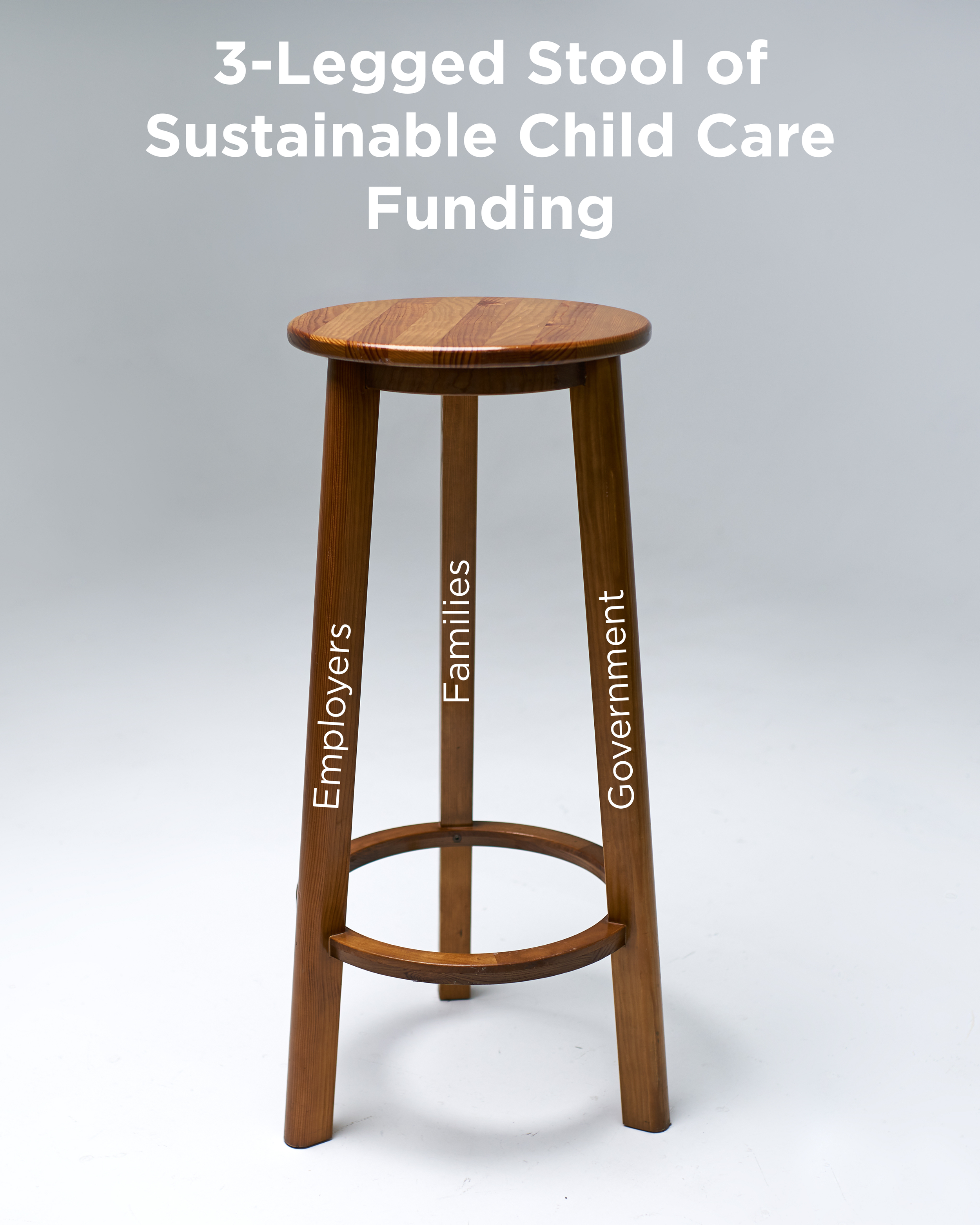 For decades, the child care field has talked about the need for a three-legged stool of sustainable funding: families, government, and employers. Just like a stool needs all three legs to stand, child care needs all three funding sources to be stable.